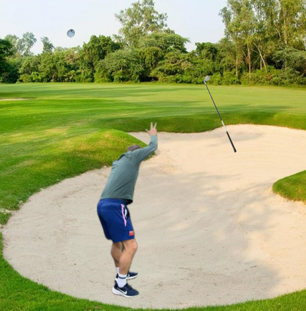 What could be taken from observations and tales from the past few hours and who might be in contention. Neil, Worryingly calm and I suspected already working on a victory speech. Rick, a mixed bag as usual, summed up by a drive entering a pond concurrently with Sam acclaiming it as "your best shot of the day". Enty, an entirely unhelpful wedding, a late night and a crazy handicap made winning the trophy he wasn't allowed to win impossible. What do you do if you play off one and go into such penal rough .. pick up apparently. (except you Jess ..) Sam, long grass, incorrectly located fairways and a dodgy grip were not his friends. On a positive front, that's the worst round of his life out of the way, so onwards and upwards, particularly as the rough is typically sideways and downwards, Jack, I'm going to guess as mixed a bag as ever particularly given his fun with bunkers experience, which will be addressed further. Ally, I'm going to guess, steady as ever with a few flaws on the bunker wall and putting front. Presumptuous maybe .. or is it? Jess, what to say about someone who considers golf too long, too slow and lacking in tackling. Given her coining the phrase "can I stop now" I had a sneaking suspicion she probably beat most of us, whilst only wanting to play 9 holes and pick up on 3 of them. It's lovely to have you back after missing last year, just think how good you could be if you embraced, let's say 12 or more holes?